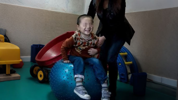 Patient was born in full-term caesarean section, cried right after birth, no cyanosis. Normal motor development. Patient could speak single sound “mama” when he was 2 years old, and because of speech and mental development delay, he was diagnosed with autism in local hospital when turned 3, then had 1 month of rehabilitation training in a hospital in Guangxi province. With no obvious development, his mother took him home training by herself. He could speak simple words when turned 4 years old, and was diagnosed as “high functional autism” in Nanjing Brain Hospital when he was 5. He continuously accepted rehabilitation training, but the effect wasn’t well. he was admitted to our department in Jan 2nd, 2014.